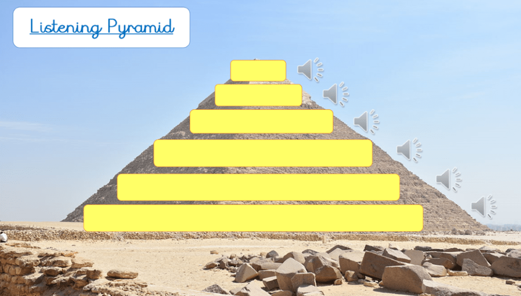 This could also be turned into a listening activity, where pupils note down the phrases that they hear, gradually becoming more complex as they work down the pyramid. The great thing about these activities is that they don’t impose limits on SEND pupils and allow them to ‘have a go’ at even quite complex language structures.